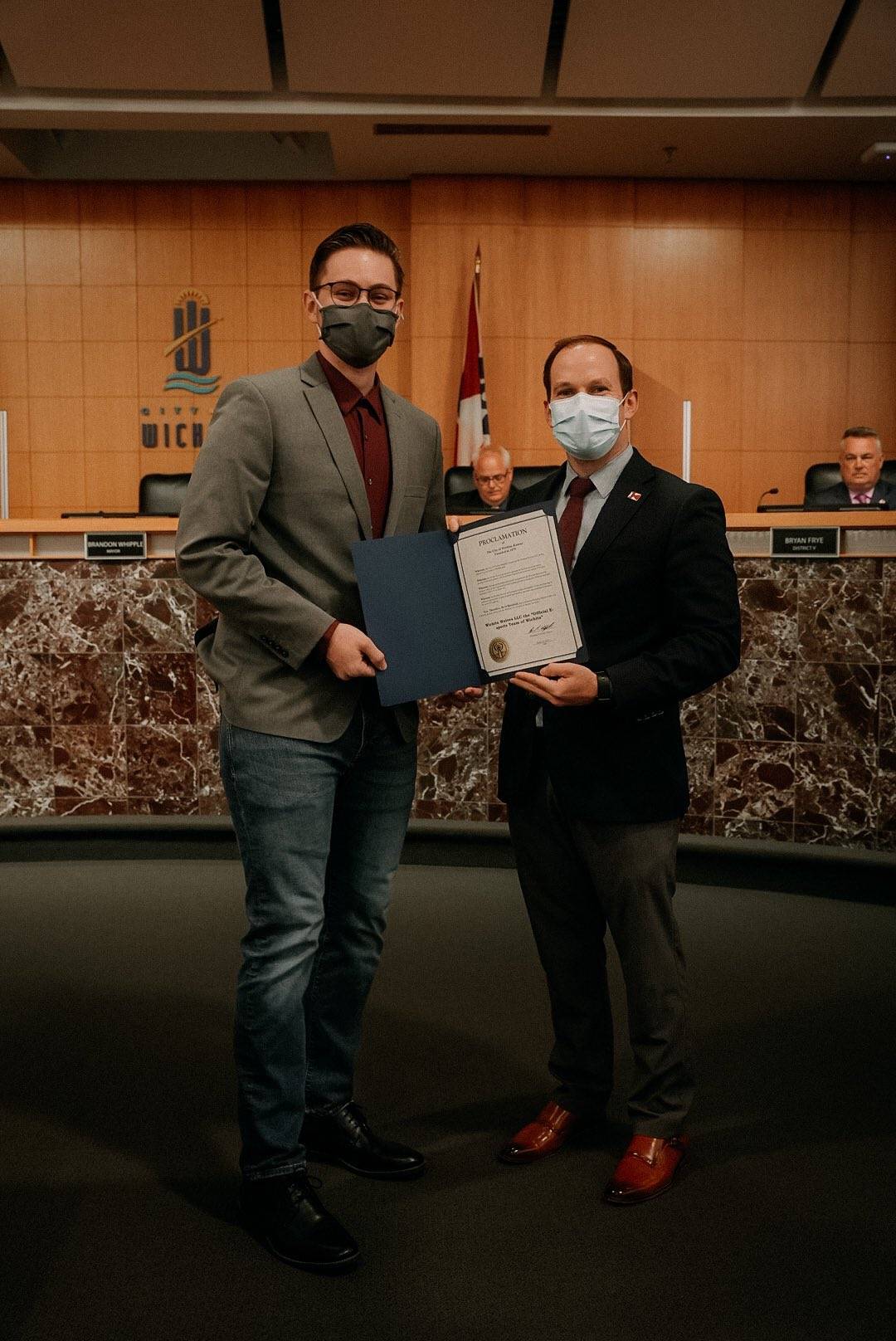 Wolves President & CEO Dylan Reese aka Scrimz with Mayor Brandon Whipple |